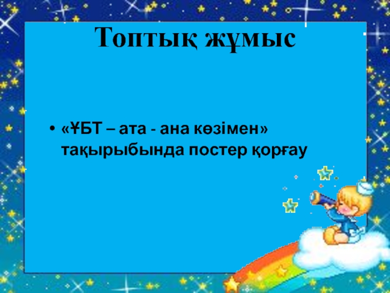 Топтық жұмыс«ҰБТ – ата - ана көзімен» тақырыбында постер қорғау