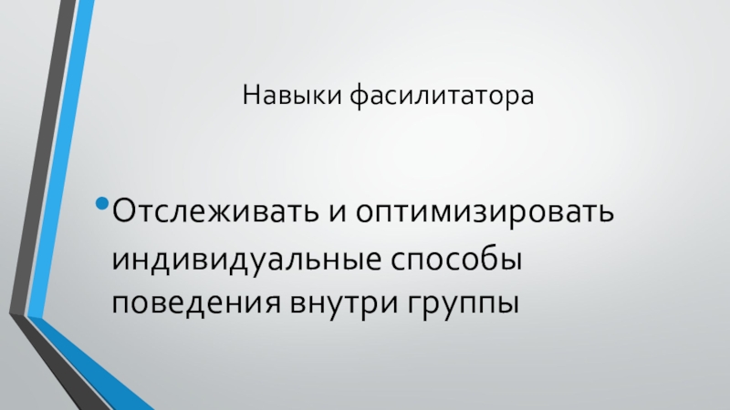 Навыки фасилитатораОтслеживать и оптимизировать индивидуальные способы поведения внутри группы