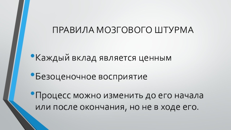 Слайд 2ПРАВИЛА МОЗГОВОГО ШТУРМА