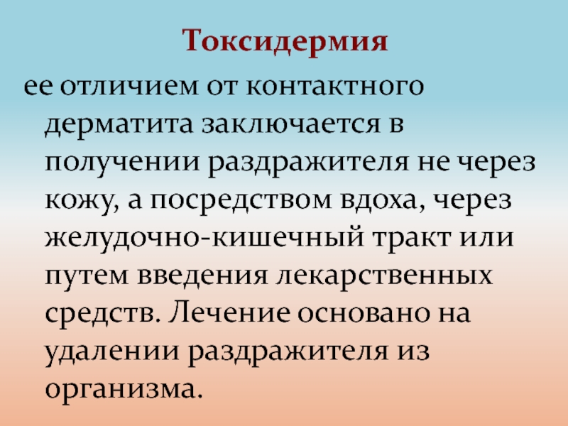 ее отличием от контактного дерматита заключается в получении раздражителя не
