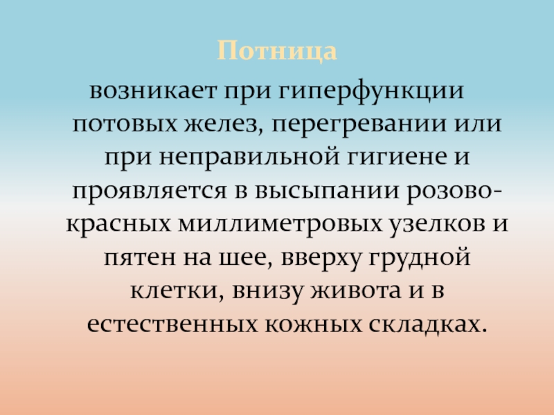 в отличие от потницы не выражается высыпаниями и возникает на