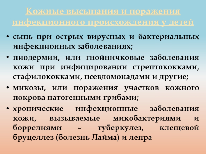 Слайд 4Кожные высыпания и поражения инфекционного происхождения у детей