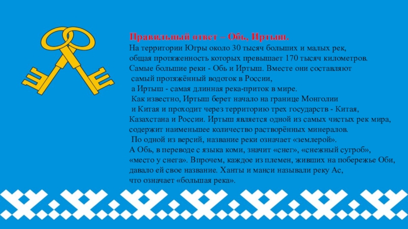 Слайд 9Правильный ответ – Обь, Иртыш.