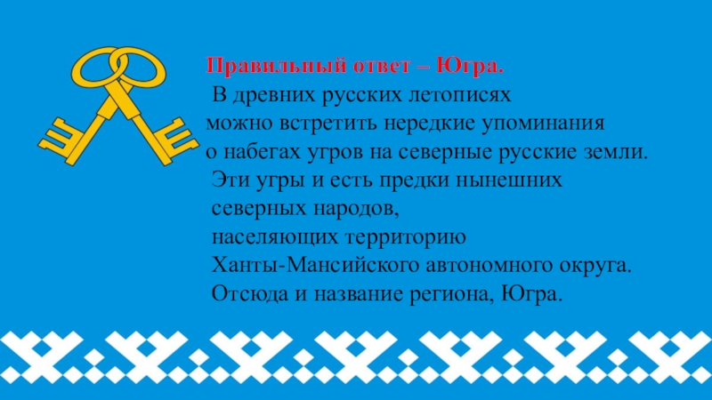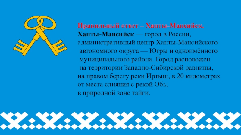 Слайд 5Правильный ответ – Ханты-Мансийск.