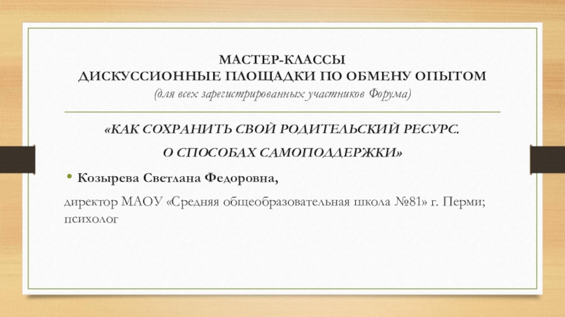 СОХРАНИТЬ СВОЙ РОДИТЕЛЬСКИЙ РЕСУРС.