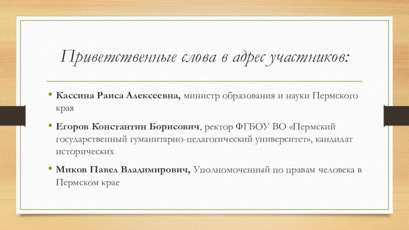 Слайд 9Приветственные слова в адрес участников: