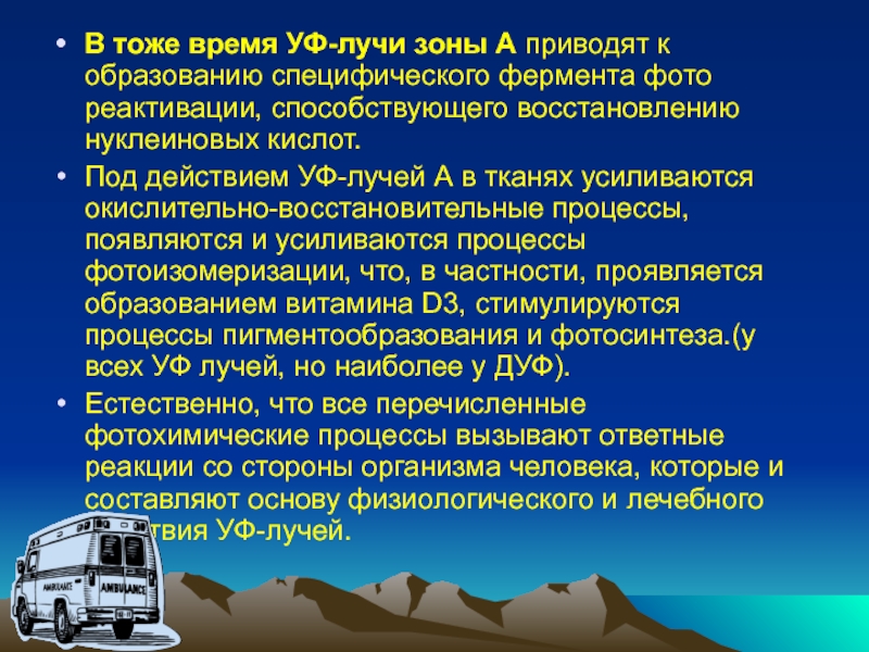 Слайд 15В тоже время УФ-лучи зоны А приводят к образованию специфического