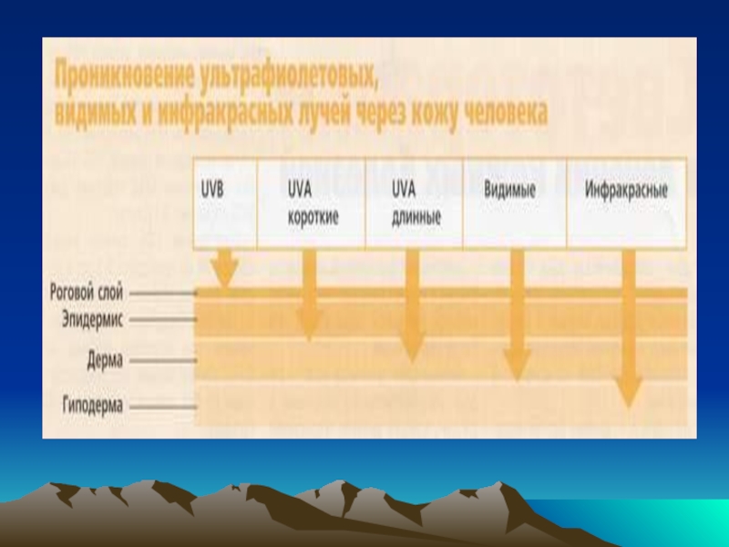 кожи, не вызывая ощущения тепла. Наибольшее количество поглощается эпидермисом. УФ-лучи