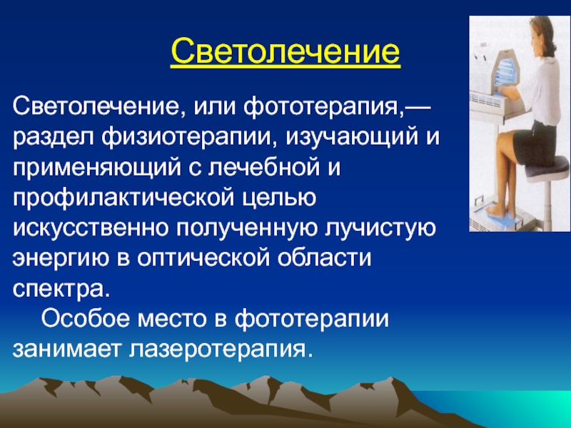Светолечение, или фототерапия,— раздел физиотерапии, изучающий и применяющий с лечебной