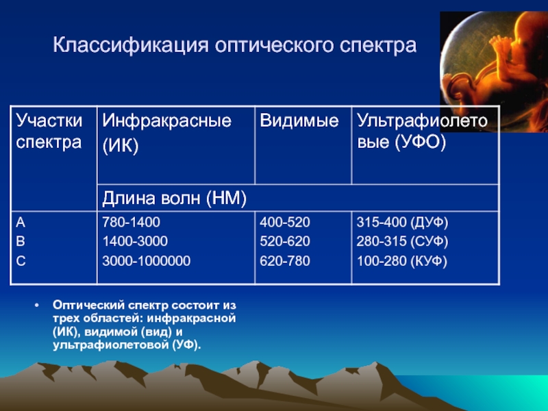 (ИК), видимой (вид) и ультрафиолетовой (УФ).