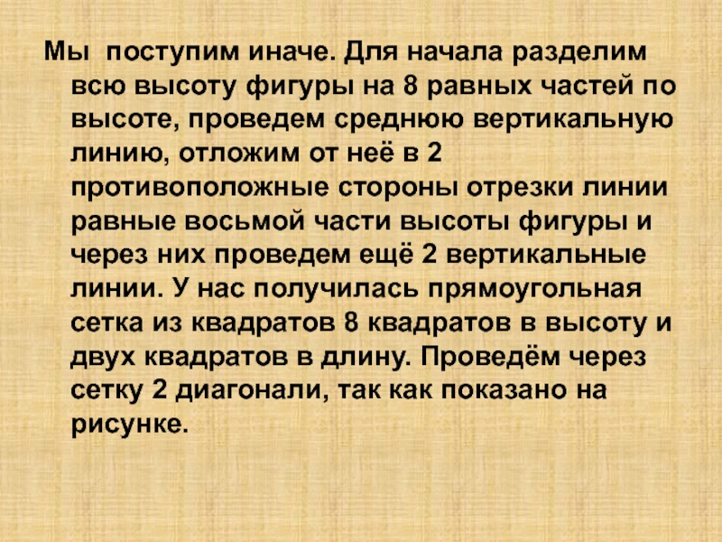 Слайд 9Мы поступим иначе. Для начала разделим всю высоту фигуры на