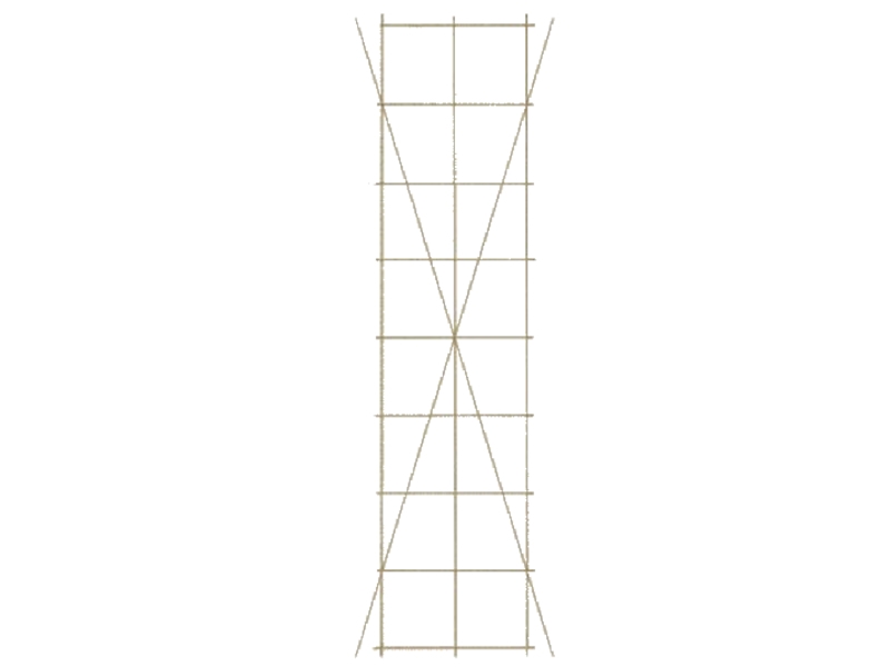 от неё в 2 противоположные стороны отрезки линии равные восьмой части высоты фигуры и через них проведем ещё 2 вертикальные линии. У нас получилась прямоугольная сетка из квадратов 8 квадратов в высоту и двух квадратов в длину. Проведём через сетку 2 диагонали, так как показано на рисунке.