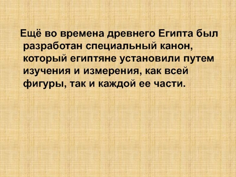 Слайд 6 Ещё во времена древнего Египта был разработан специальный канон,