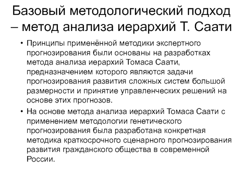 Слайд 6Базовый методологический подход – метод анализа иерархий Т. Саати