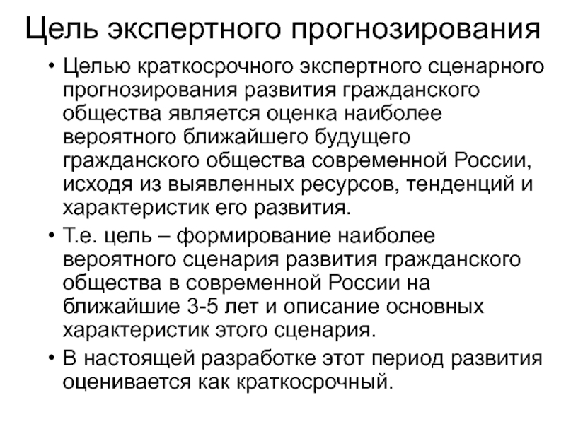 Целью краткосрочного экспертного сценарного прогнозирования развития гражданского общества