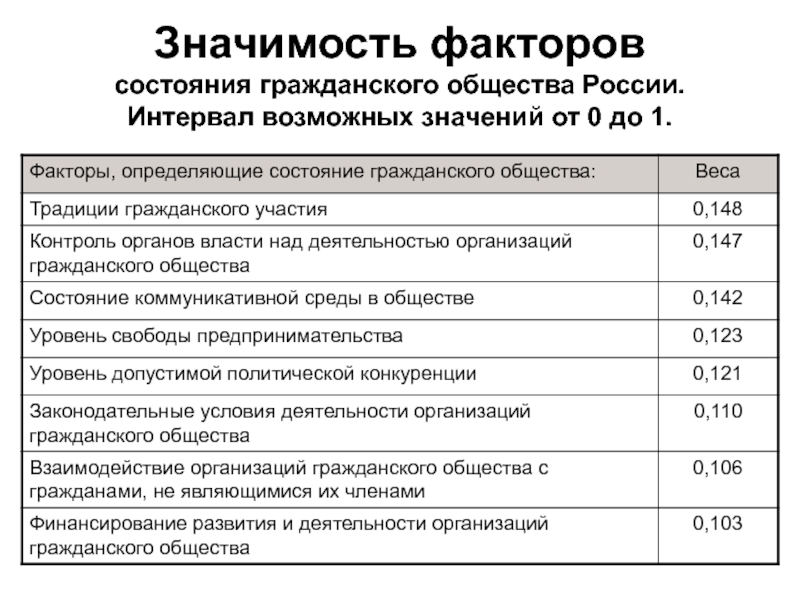 на следующем уровне – факторы, определяющие состояние гражданского общества;
