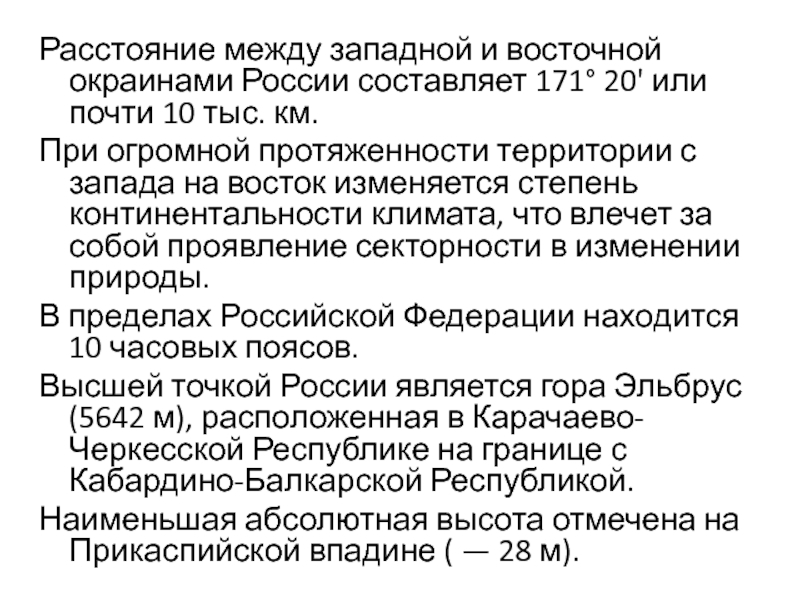 Слайд 18Расстояние между западной и восточной окраинами России составляет 171° 20'
