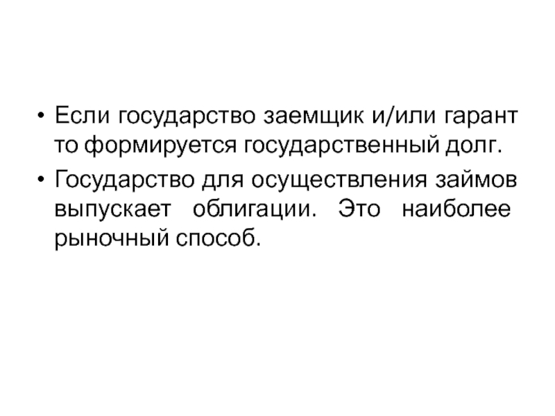 Слайд 35Если государство заемщик и/или гарант то формируется государственный долг.