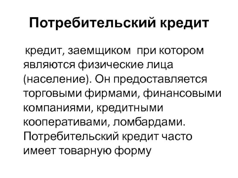 (население). Он предоставляется торговыми фирмами, финансовыми компаниями, кредитными кооперативами, ломбардами.