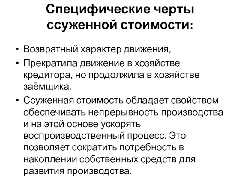 основополагающее значение имеет такое свойство кредита как возвратное, возмездное его движение.