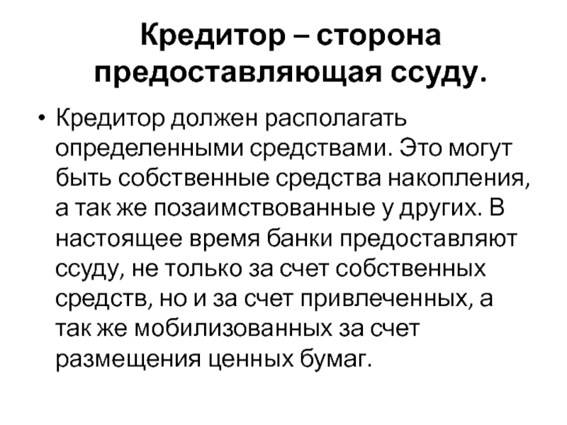 Слайд 8Кредитор – сторона предоставляющая ссуду.