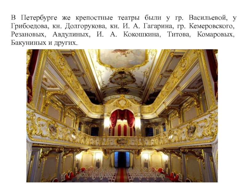 Слайд 5В Петербурге же крепостные театры были у гр. Васильевой, у