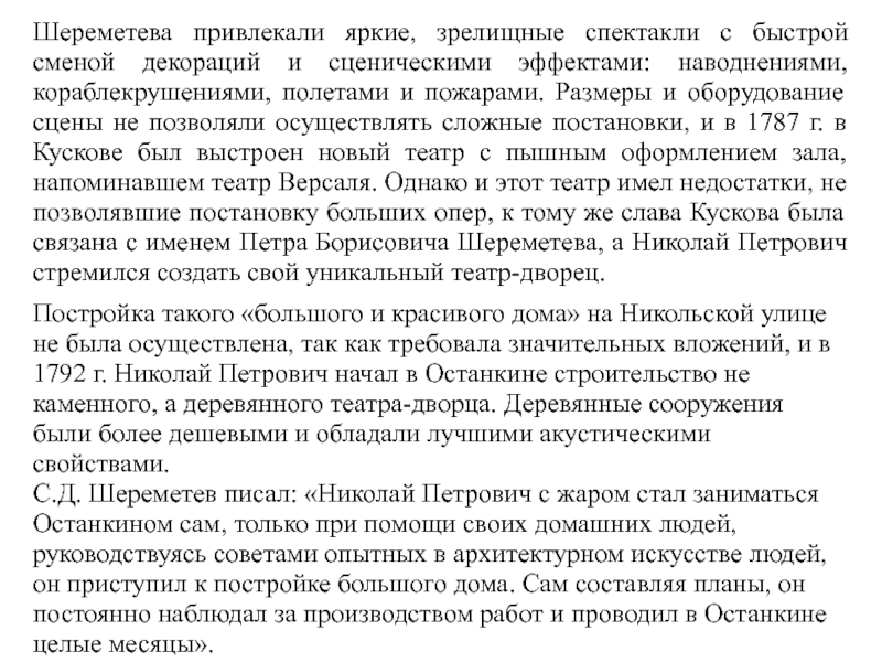 Слайд 10Шереметевские театры возникли одной только волей хозяина. Эти театры были