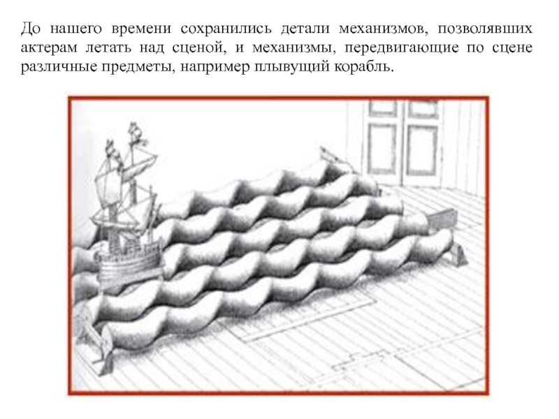 Слайд 23До нашего времени сохранились детали механизмов, позволявших актерам летать над