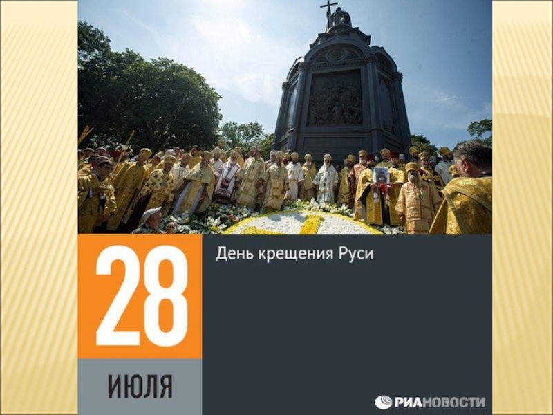 крестил жителей «Огнем и мечом».Но еще нес-колько веков жители Руси продолжали одновременно пок-лоняться и язычес-ким богам.
