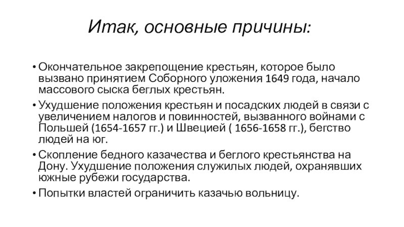 Слайд 3Причины крестьянской войны XVII в.