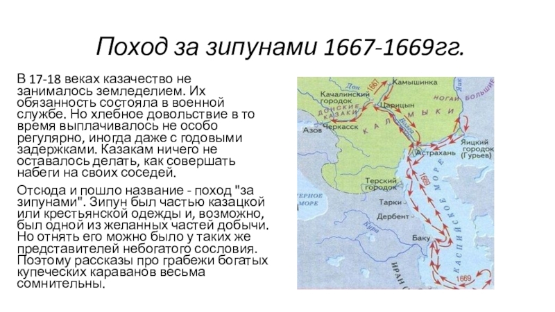 Слайд 5 Поход за зипунами 1667-1669гг.