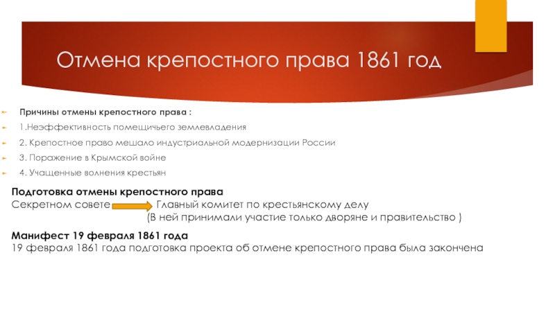 19 февраля 1861 года подготовка проекта об отмене крепостного права была закончена