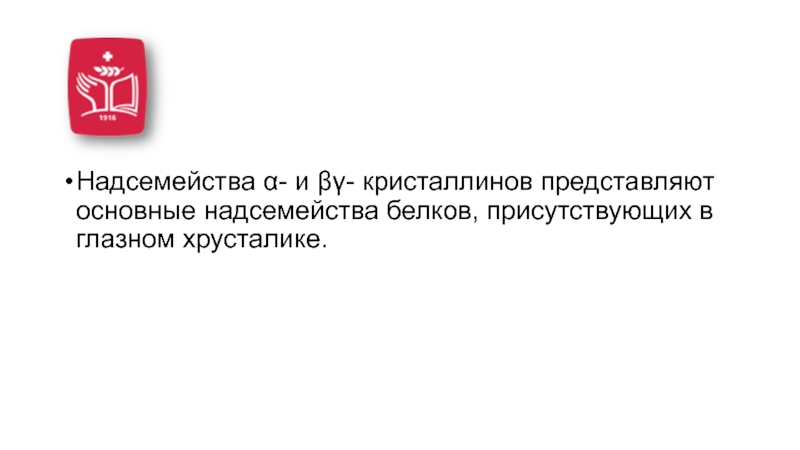 Слайд 23Надсемейства α- и βγ- кристаллинов представляют основные надсемейства белков, присутствующих