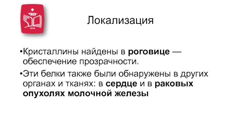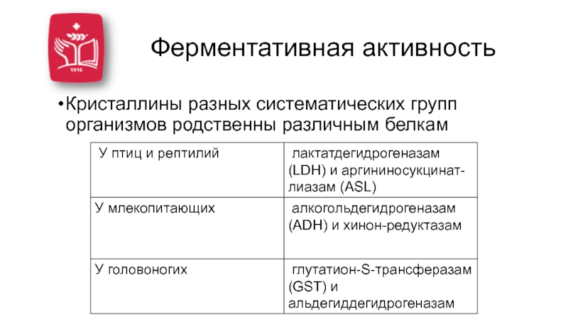 Слайд 24Кроме этих кристаллинов есть и другие, таксон-специфичные кристаллины, которые можно
