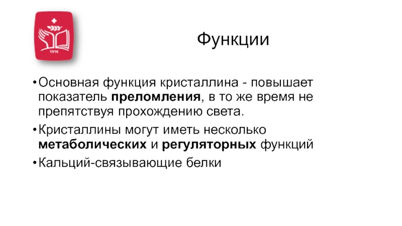 Основная функция кристаллина - повышает показатель преломления, в то же