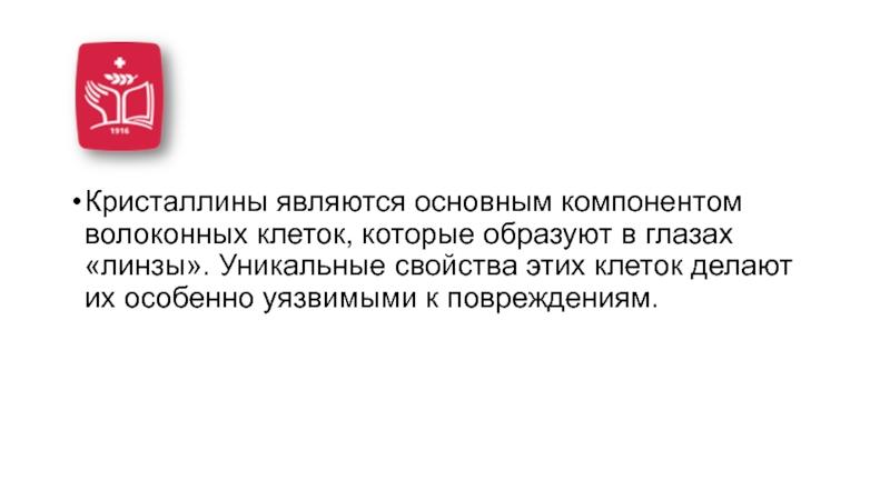 Слайд 5Кристаллины являются основным компонентом волоконных клеток, которые образуют в глазах