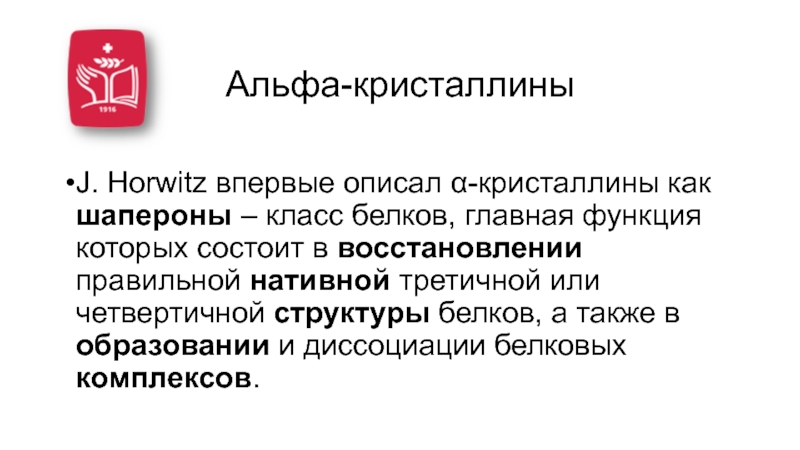 J. Horwitz впервые описал α-кристаллины как шапероны – класс белков,