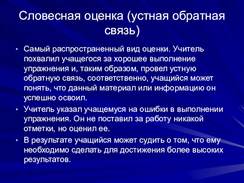 учащегося за хорошее выполнение упражнения и, таким образом, провел устную