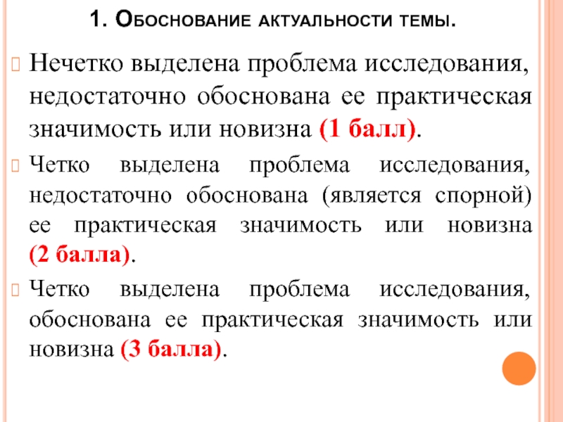 обоснована (является спорной) ее практическая значимость или новизна (2 балла).