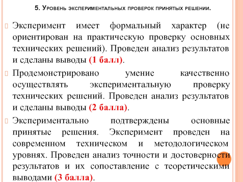 Слайд 175. Уровень экспериментальных проверок принятых решении.
