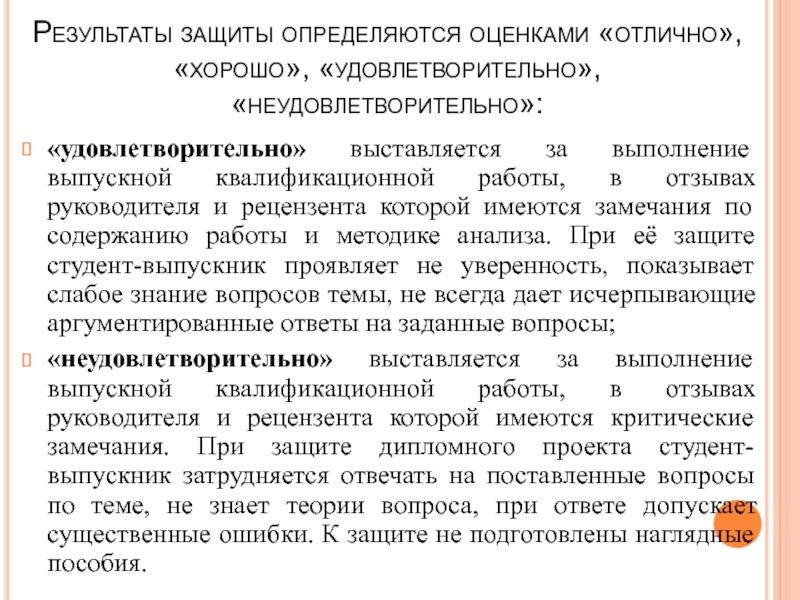 Слайд 4Результаты защиты определяются оценками «отлично», «хорошо», «удовлетворительно», «неудовлетворительно»: