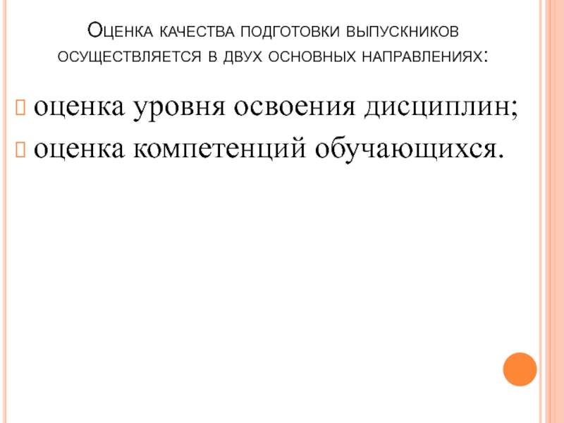 Слайд 2Оценка качества подготовки выпускников осуществляется в двух основных направлениях: