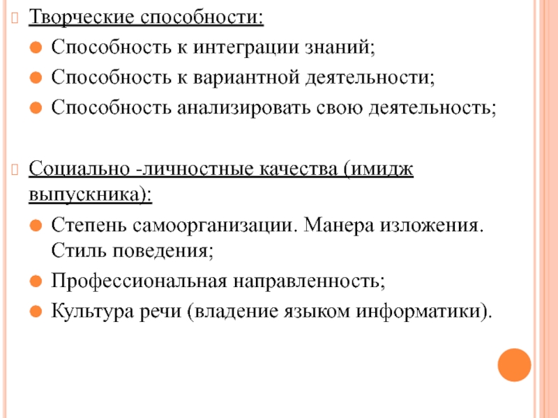 Степень самоорганизации. Манера изложения. Стиль поведения;