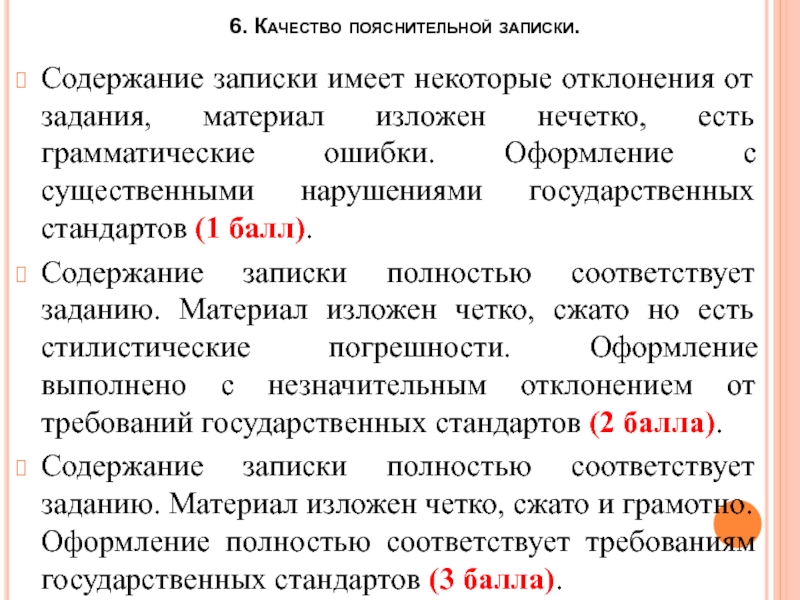 Содержание записки полностью соответствует заданию. Материал изложен четко, сжато но есть стилистические погрешности. Оформление выполнено с незначительным отклонением от требований государственных стандартов (2 балла).