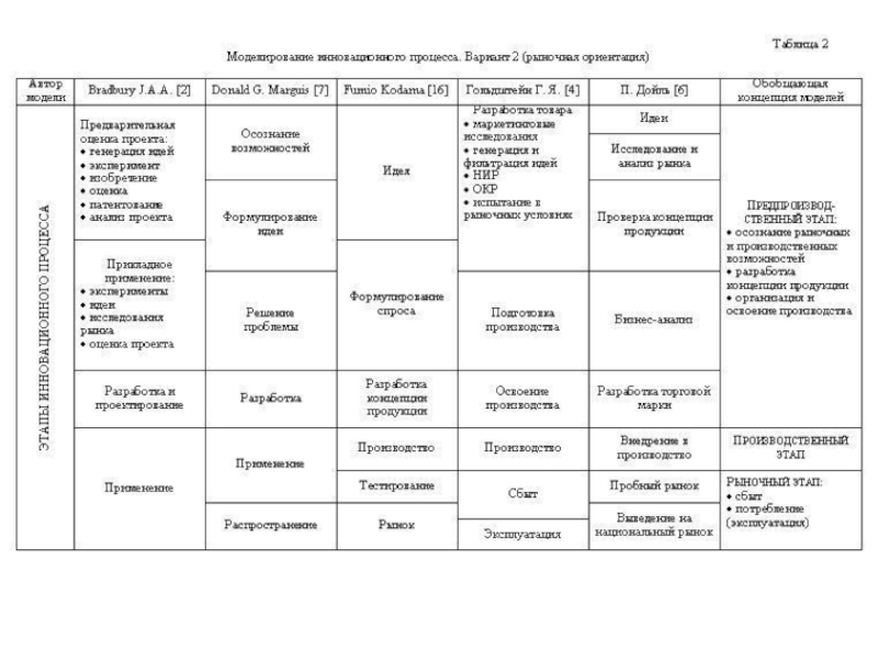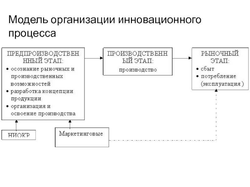 Последовательно сменяющиеся этапы инновационного процесса предусматривают как зарождение и обоснование идеи о новом методе удовлетворения общественных потребностей, так и создание, распространение, использование на практике конкретного продукта, технологии, услуги.