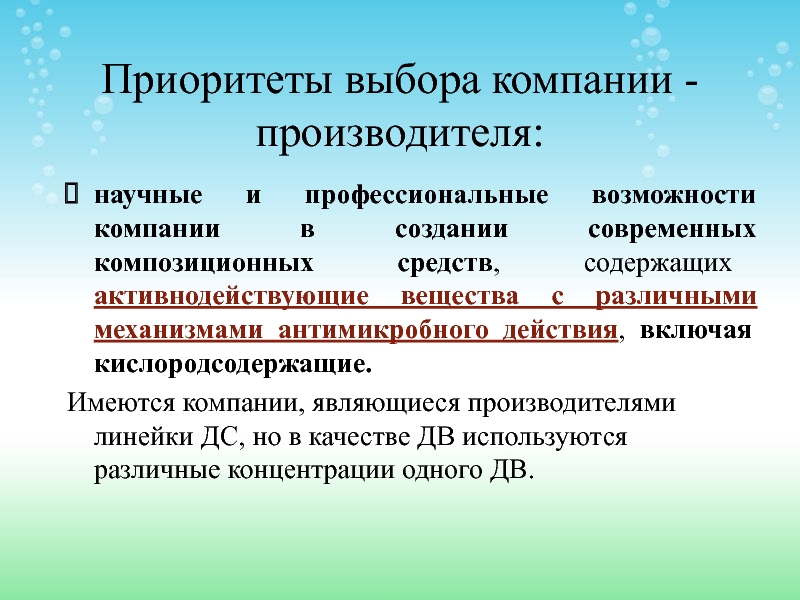 Имеются компании, являющиеся производителями линейки ДС, но в качестве ДВ используются различные концентрации одного ДВ.