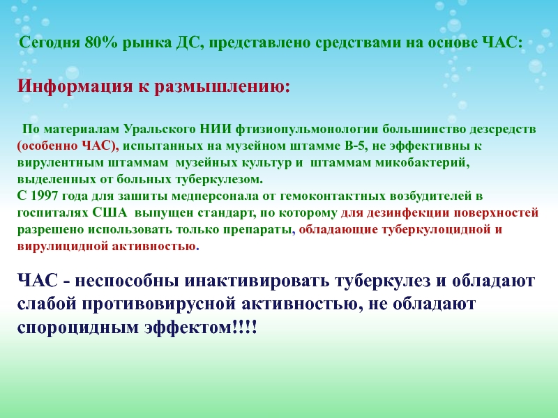 Быстрое формирование и распространение резистентных к ЧАС м/организмов
