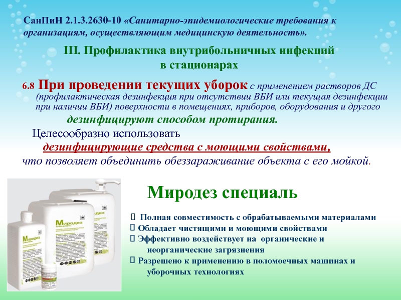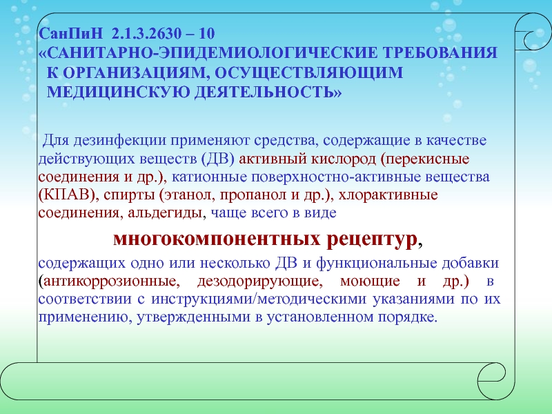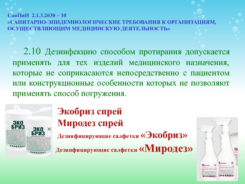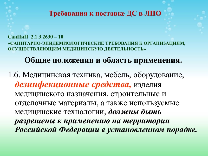 Слайд 2СанПиН 2.1.3.2630 – 10