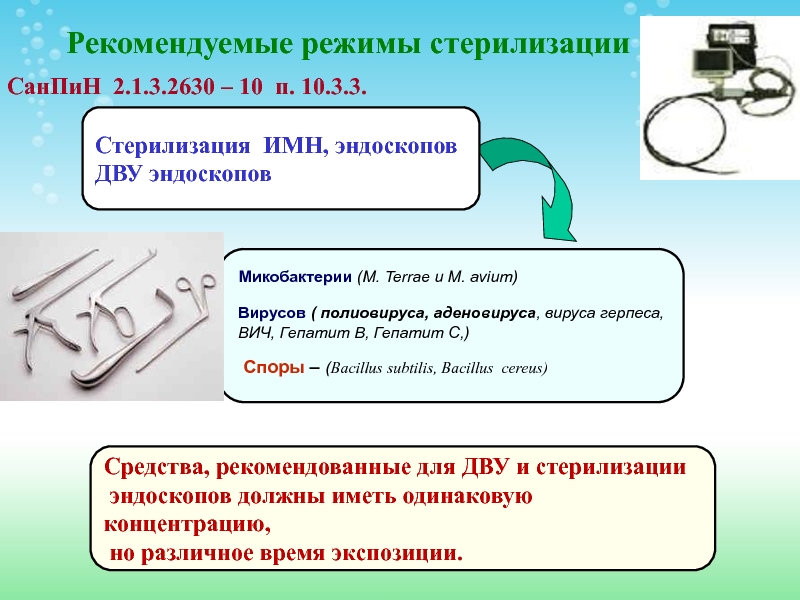 1.2. Для проведения дезинфекционных и стерилизационных мероприятий ООМД должны регулярно обеспечиваться моющими и дезинфицирующими средствами различного назначения, кожными антисептиками, средствами для стерилизации изделий медицинского назначения, а также стерилизационными упаковочными материалами и средствами контроля (в том числе химическими индикаторами).