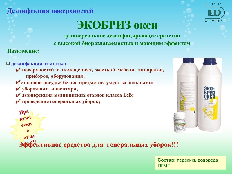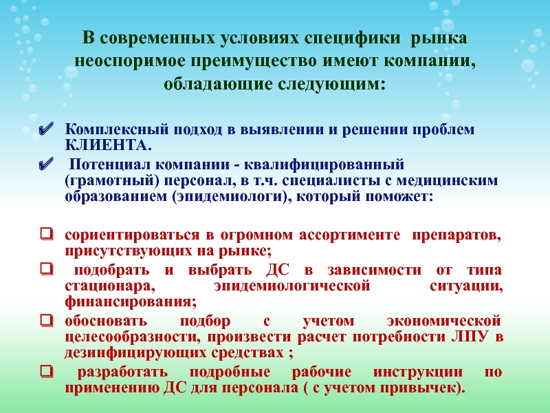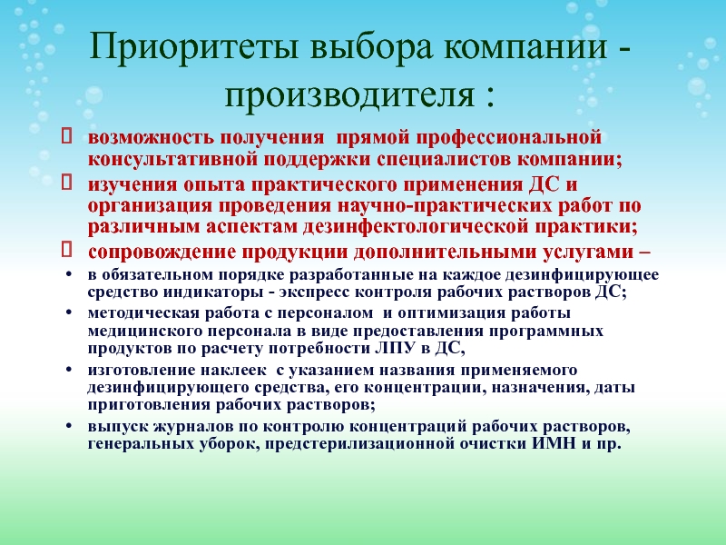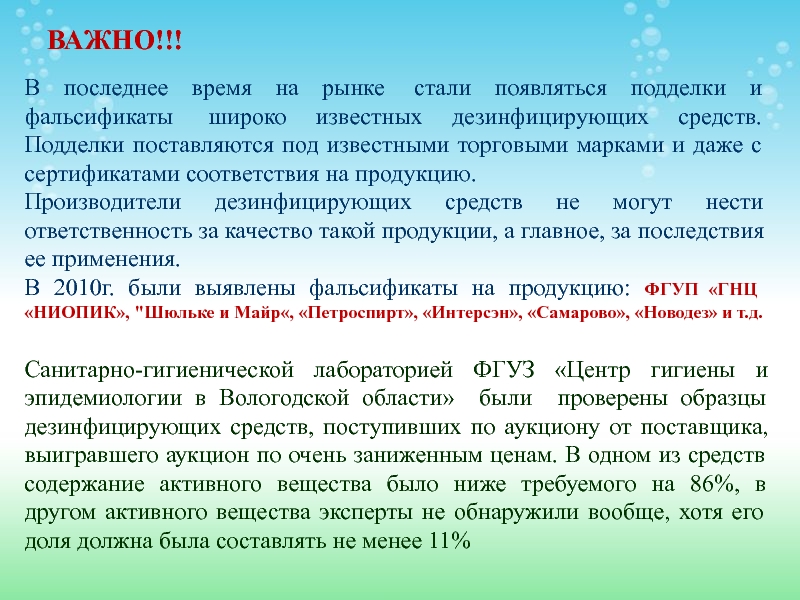 Поставщиком дезинфицирующих средств должна быть солидная,